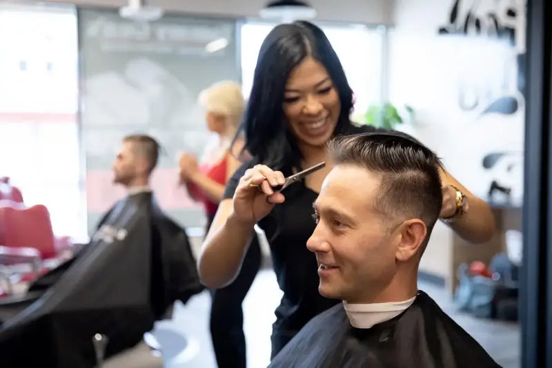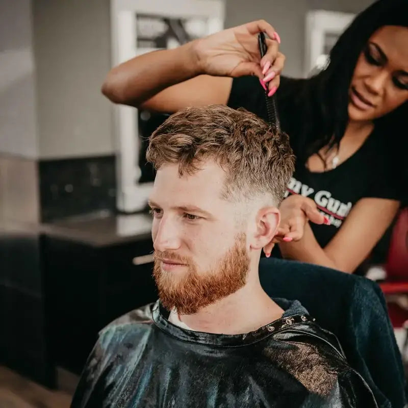 Any Haircut of your choice, whether you're looking for a Fade, Pompadour, Skin Fade, or Long Styles we've got you covered. Includes Consultation, Shampoo + Wash, 2-minute Scalp Massage, Styling, and Hot Towel Finish.