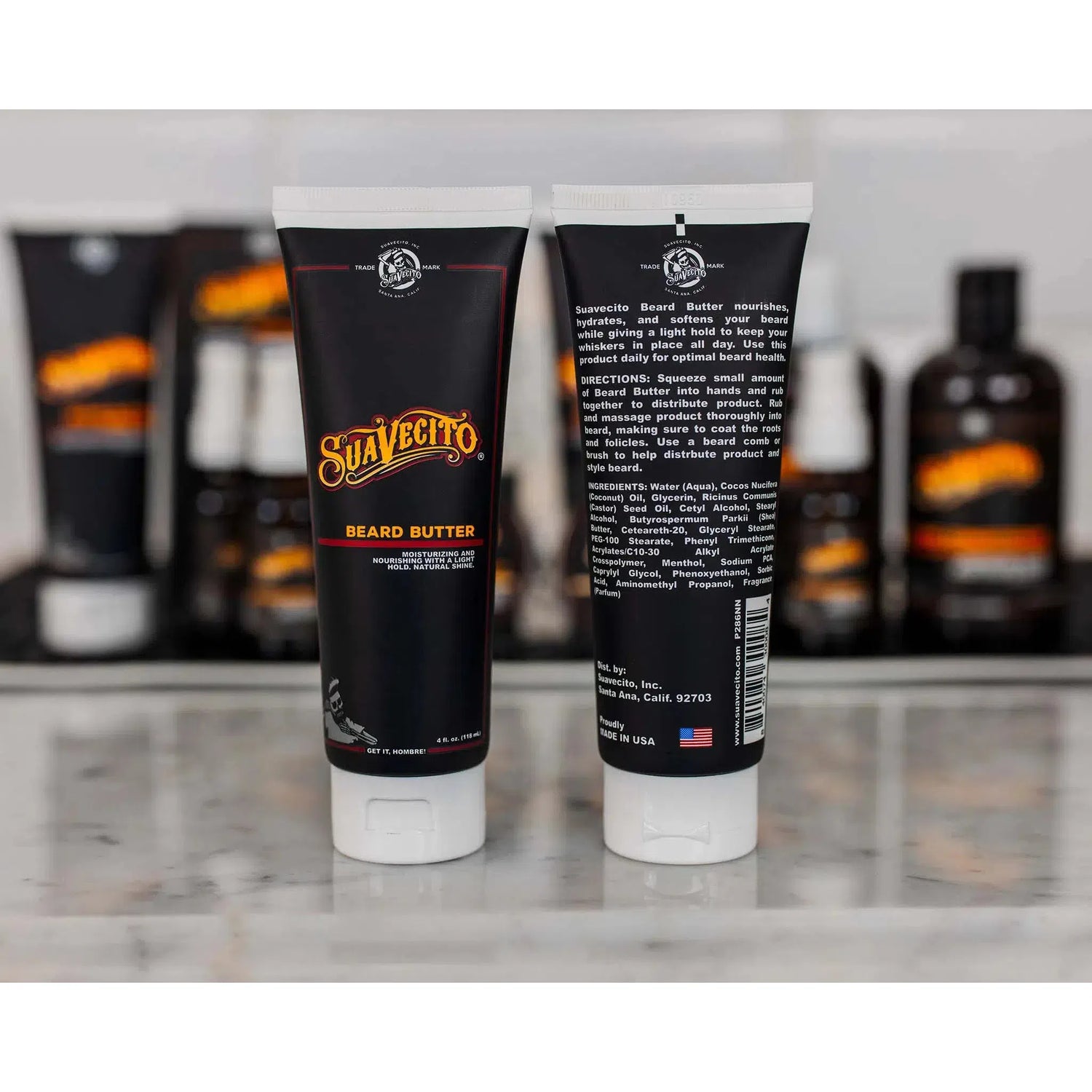 Suavecito Beard Butter is for those wanting to nourish and soften their beards. With a light hold to keep your whiskers in place all day, this beard butter will give a natural shine while enhancing the overall appearance of your beard.