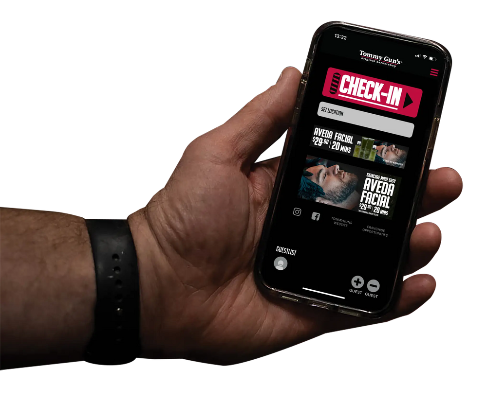 Confidence is just a tap away! Check-in now through the new Tommy Gun’s Original Barbershop app. With over 100 barbershops worldwide, your next Tommy Gun’s experience is ready when you are. Whether it’s a refreshing shave, a fresh haircut, an Aveda facial, or just a moment of relaxation, we’ve got you covered.