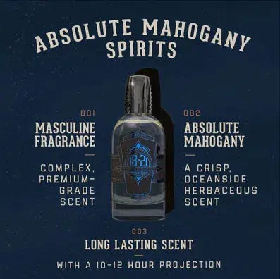 18.21 Man Made Spirits Absolute Mahogany is for those looking for a unique and luxurious cologne. This crisp, herbaceous blend of Vibrant Italian mandarin, bergamot, velvety cardamom, warm cassia bark, clary sage, cinnamon, sensual night blooming jasmine, dark Virginia cedar, rustic Mahogany woods, tonka bean, and creamy Tahitian vanilla bean adds a touch of golden amber for a truly indulgent experience. This all-day fragrance has a 10-12 hours projection with pronounced depth, longevity and sillage.