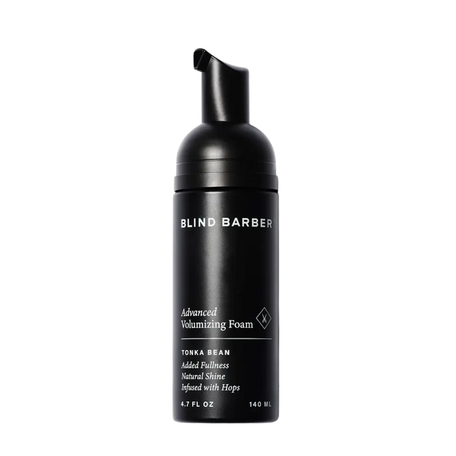 Blind Barber Advanced Volumizing Foam delivers weightless, flexible hold while adding serious lift and texture that lasts all day. Infused with Pro-Vitamin B5, Hops Extract, and Saw Palmetto, it strengthens hair, soothes the scalp, and leaves a subtle semi-sweet tonka bean scent.