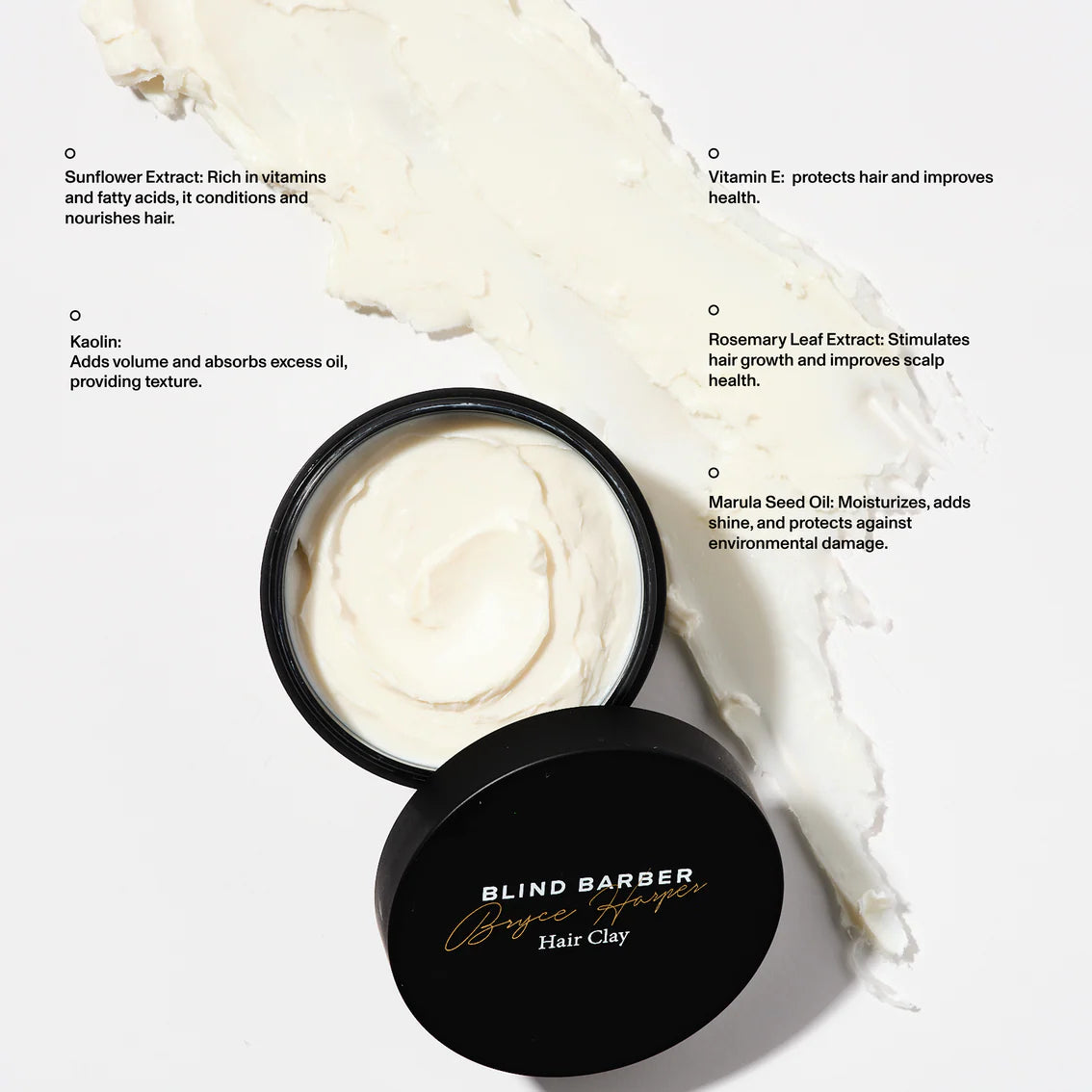Blind Barber Bryce Harper Hair Clay delivers the power and precision behind Bryce’s signature flow. This expertly crafted clay blends Kaolin Clay and Shea Butter to absorb excess oil, create texture, and add volume with a strong, pliable hold. Infused with a subtle Cream of Coconut aroma, it leaves hair matte, controlled, and effortlessly masculine—built to perform all day.