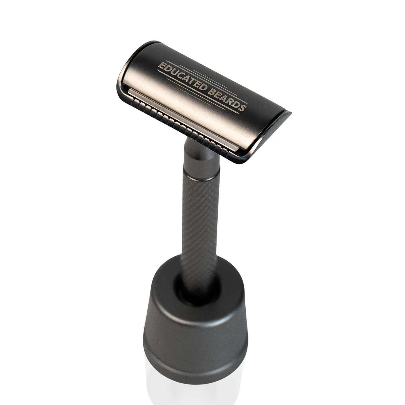 The Educated Beards Safety Razor & Stand + 10 Blades is the modern man’s nod to timeless shaving. Built with a weighty brass handle and zinc alloy head, it delivers a clean, controlled shave every time without plastic or waste. Finished with a sculpted stand and starter blades, this set turns shaving into a ritual that looks as sharp on your counter as it feels on your skin.