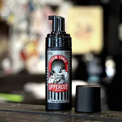 Uppercut Deluxe Foam Tonic is for those who want a light hold with a healthy shine. This hydrating mousse delivers the ultimate in scalp and hair care, offering both protection against heat as well as styling control thanks to the soy proteins and white tea extracts. With a lightweight foam formula and a unique foaming applicator, this tonic is unlike anything else being offered.