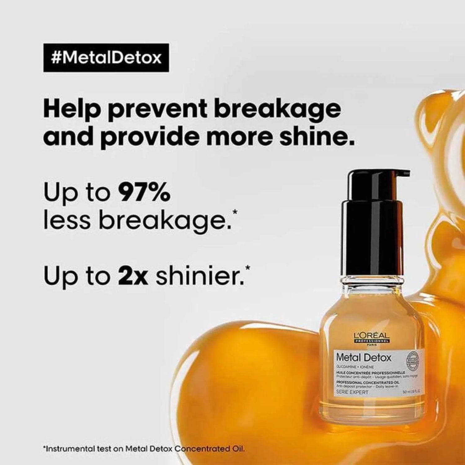 Look no further for the fix to your hair woes! L’Oréal Professionnel Metal Detox Anti-Deposit Protector Concentrated Oil kicks metal out of the building and your hair - leaving it softer, smoother and better nourished than ever before. It's the perfect pick-me-up for colour, balayage and lightening services.