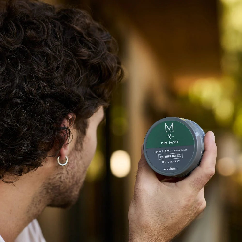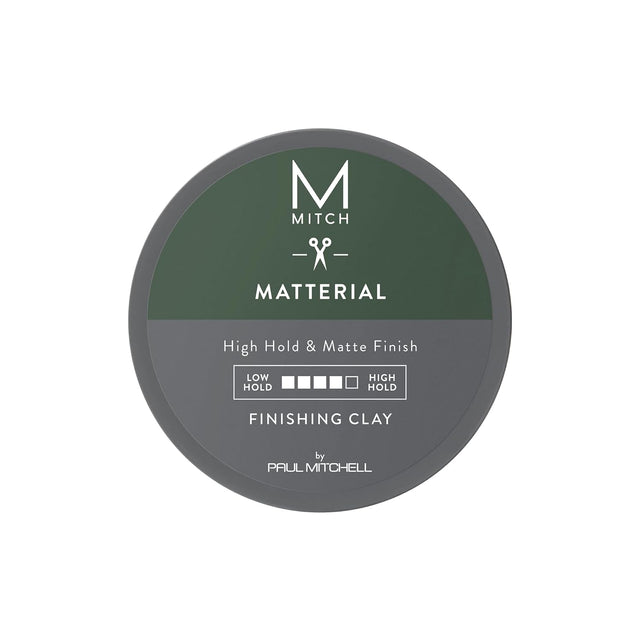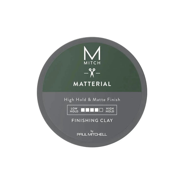 The Paul Mitchell Mitch Matterial Finishing Clay High Hold is crafted for men who want strong, lasting control with an ultra-matte finish. Infused with thickening ingredients, it adds volume and bulk to fine hair while delivering a dry, textured look. With natural clay to eliminate shine, this styling clay is perfect for creating bold, modern hairstyles with a masculine edge.