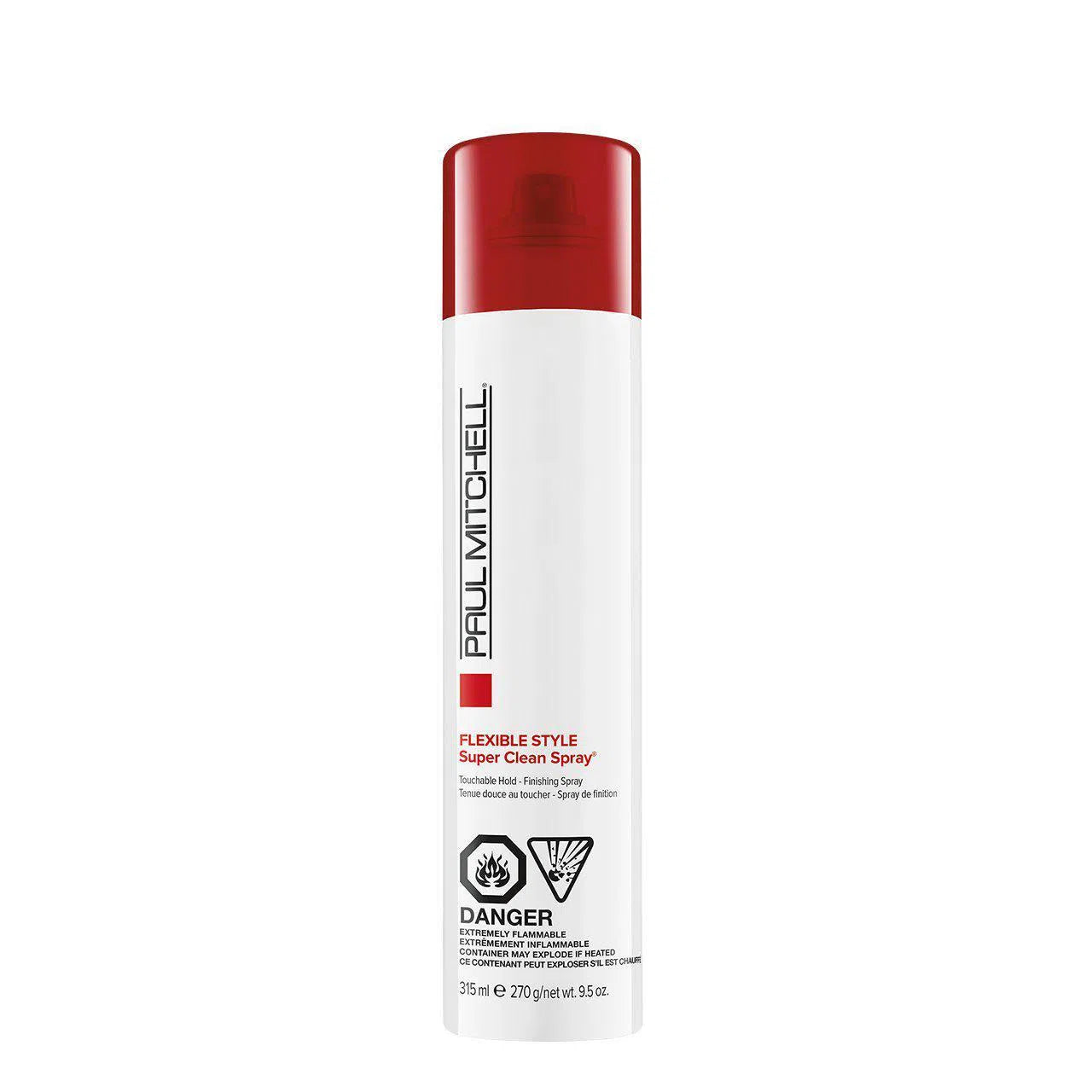 Paul Mitchell's Flexible Style Super Clean Spray® adds fullness, texture, and shine to the hair. With its lightweight formula, this fast-drying hair spray creates flexible, touchable hold that is brushable without flaking or crunch. The fine mist dries quickly with clean, run-your-fingers-through-it results.