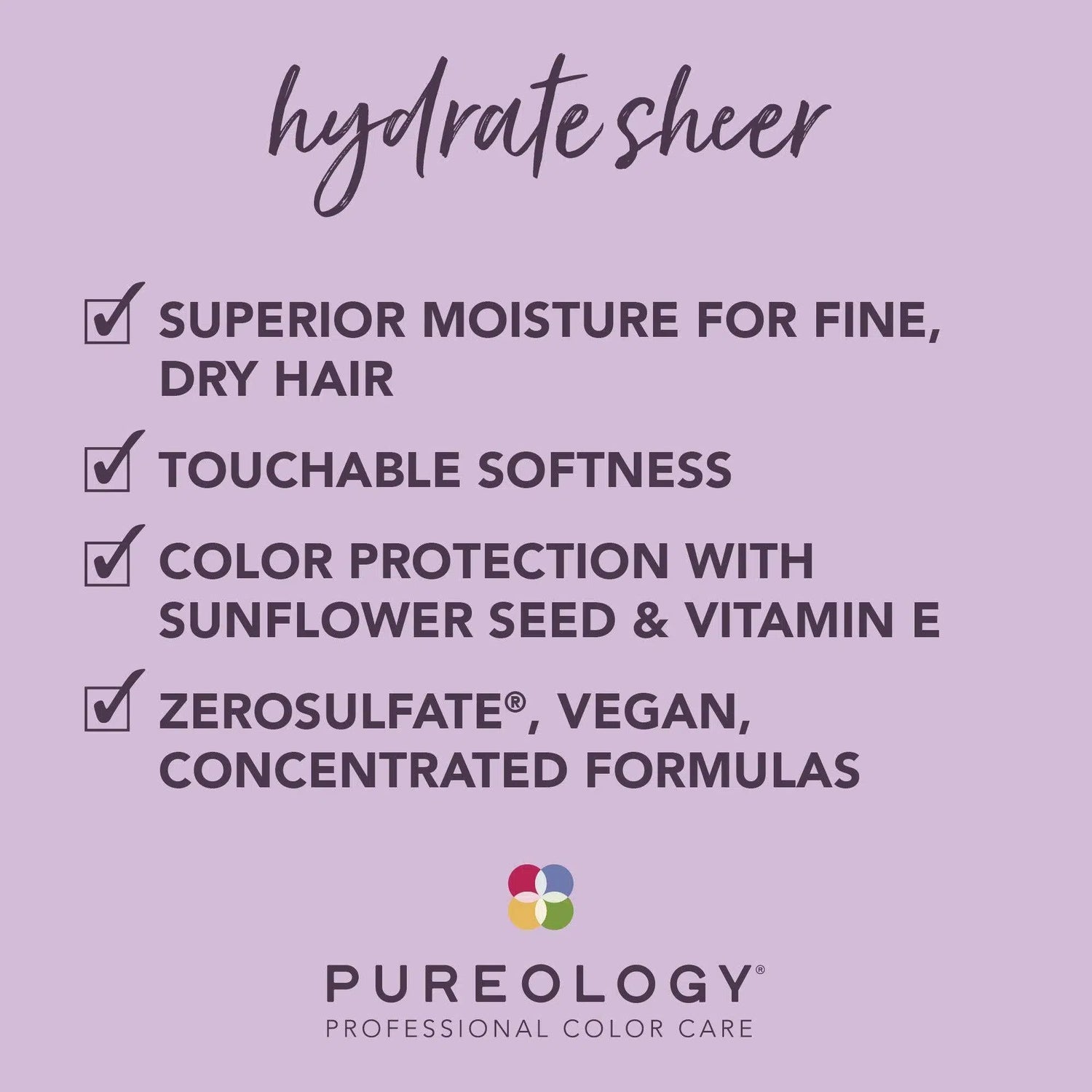 Pureology Hydrate Sheer Shampoo is 100 % vegan and ZeroSulfate® with patented ANTIFADE COMPLEX® to protect colour vibrancy.