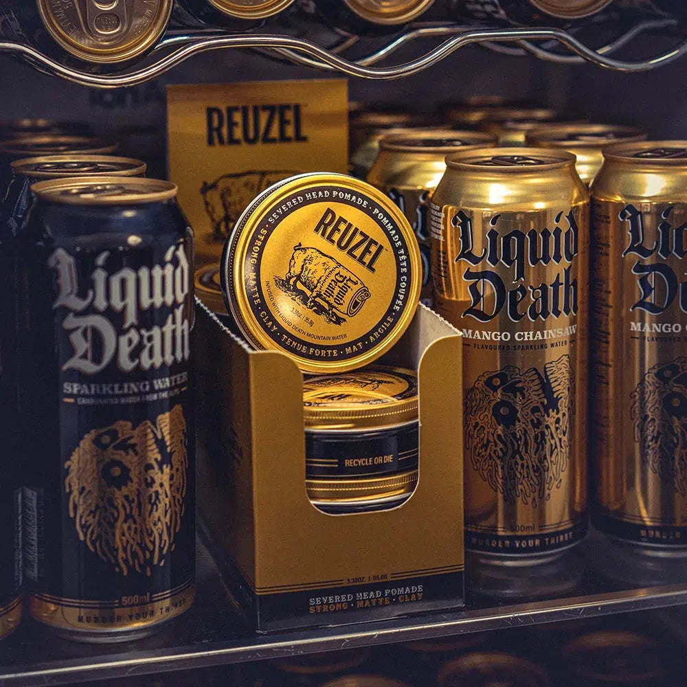 Reuzel Severed Head Clay Pomade is the ultimate hair styling product for all hair types. Infused with Liquid Death Mountain Water, Argan Oil & Aloe, it adds natural definition and texture while providing a workable hold. The non-sticky and non-greasy formula is water soluble, making it easy to wash out, and leaves a refreshing apple salsa fragrance.