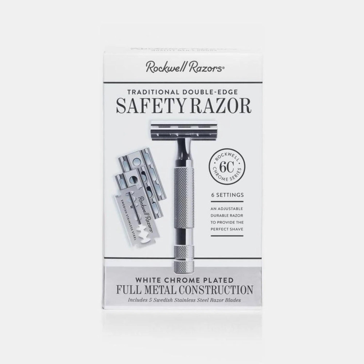 Rockwell Razors 6C Double Edge Razor Gunmetal is for those with coarse or thick facial hair. This razor is designed to ease shaving for men with coarse hair to ensure a close, comfortable shave. This high-end razor combines revolutionary precision-engineered blade angles and patented adjustability. Made from Chromed Zinc Alloys with Swedish Stainless Steel Blades, this ultimately durable razor delivers an unparalleled shaving experience.