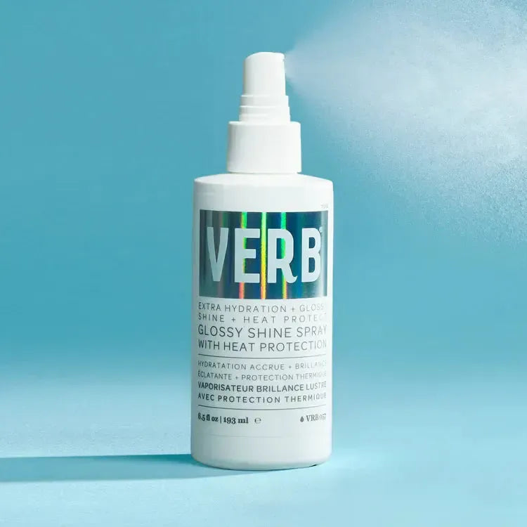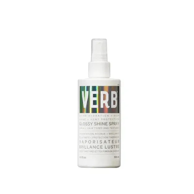 Verb Glossy Shine Spray Heat Protection delivers professional-grade moisture, radiant shine, and heat defense up to 450°F/232°C. Powered by peach oil, rosehip oil, and squalane, this advanced formula nourishes and softens while enhancing shine by 89%. Ideal for thick to coarse hair, this vegan and cruelty-free spray provides a polished finish with a refined citrus and rose aroma.